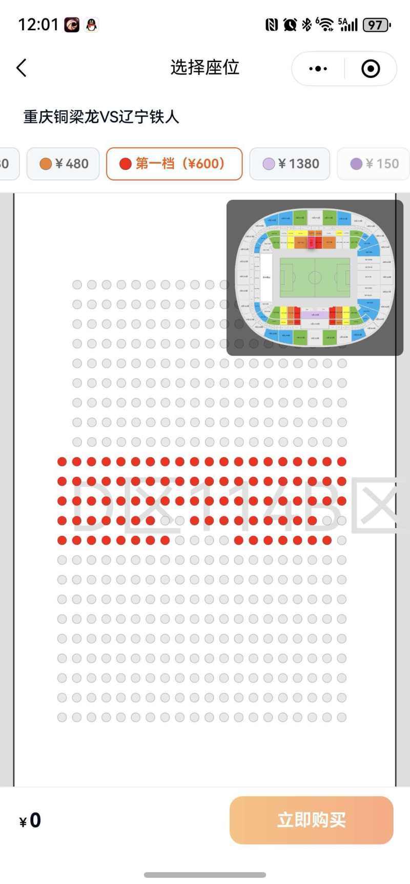 150元最低价位球票全部售罄。网络截图